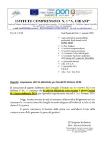 Sospensione attività didattiche e chiusura degli uffici per lunedì 05 febbraio 2024